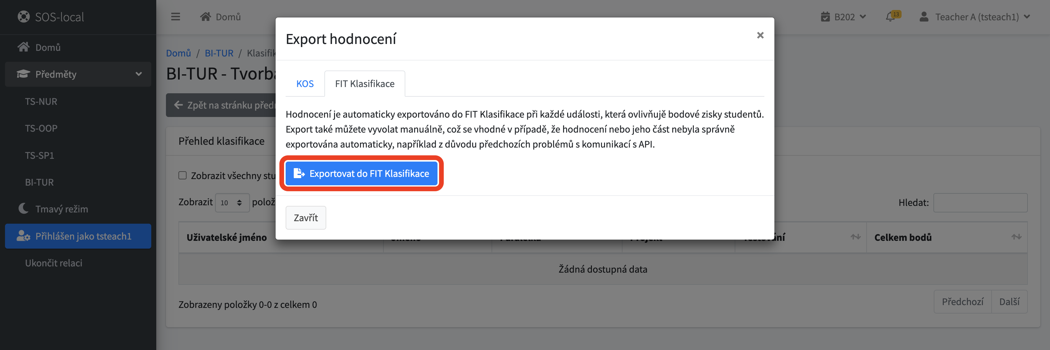 - Klikněte na "Exportovat do FIT Klasifikace"