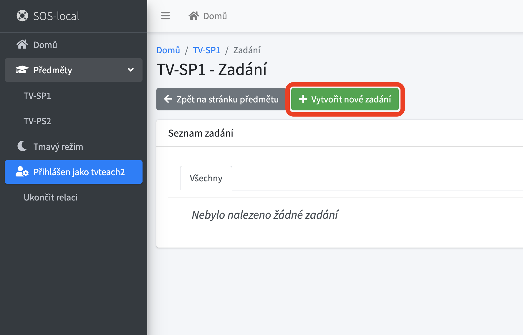 - Otevřete si seznam zadání v daném předmětu, kde vidíte všechna svá vytvořená zadání
